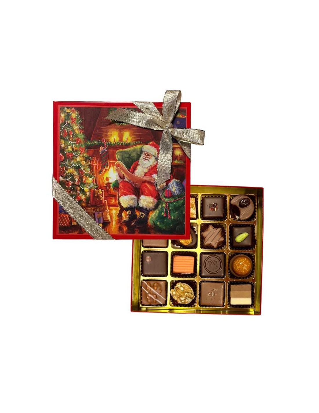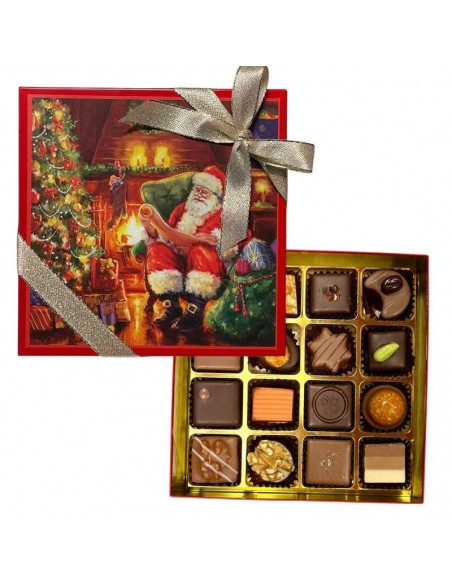 Our Christmas tin with 16 different pralines. Elegantly packaged in a filigree tin with matching mesh. 165g pralines.